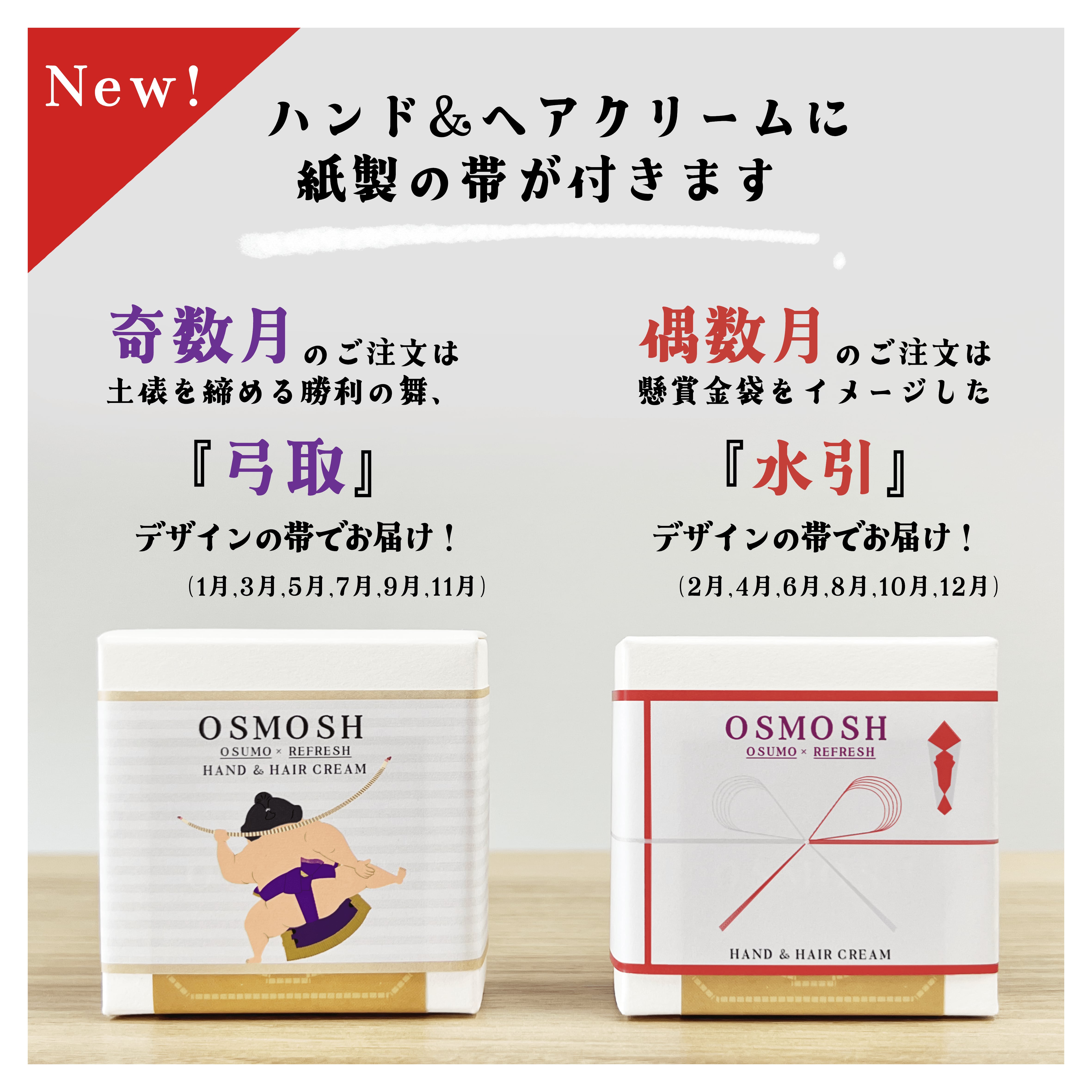 ハンド&ヘアクリーム、アクリルキーホルダー それぞれで、お好きなまわしの色をお選びいただくことが可能です